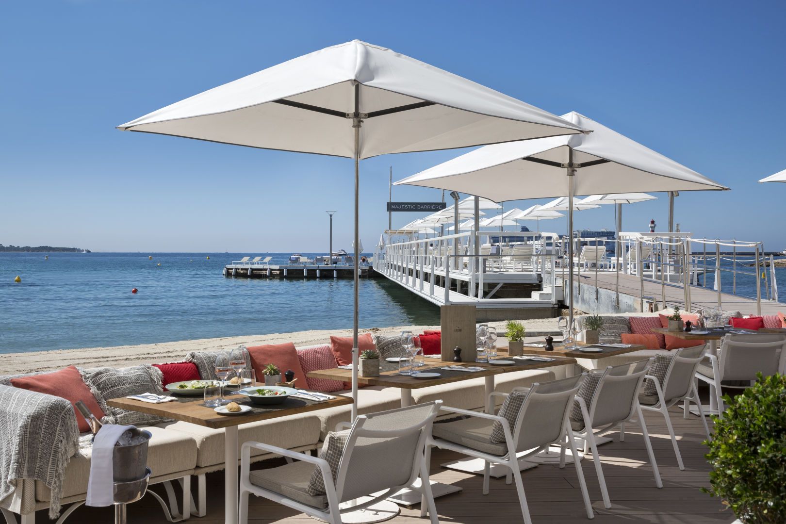 Im Strandrestaurant La Plage – Majestic Barrière Restaurant werden internationale Köstlichkeiten angeboten. Fouquet Cannes, die hoteleigene Brasserie im Pariser Stil, bietet ein völlig einzigartiges kulinarisches Erlebnis. Le Petite Maison de Nicole ist spezialisiert auf mediterrane Gerichte.