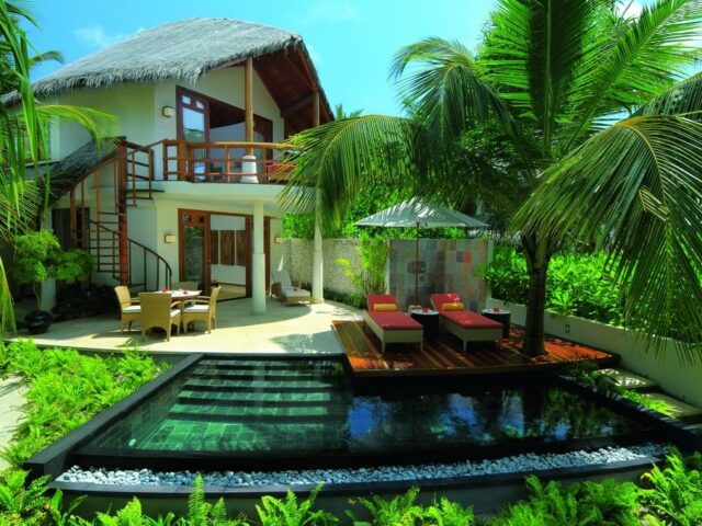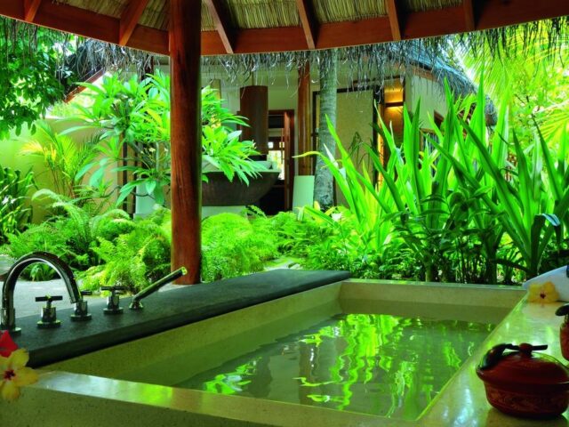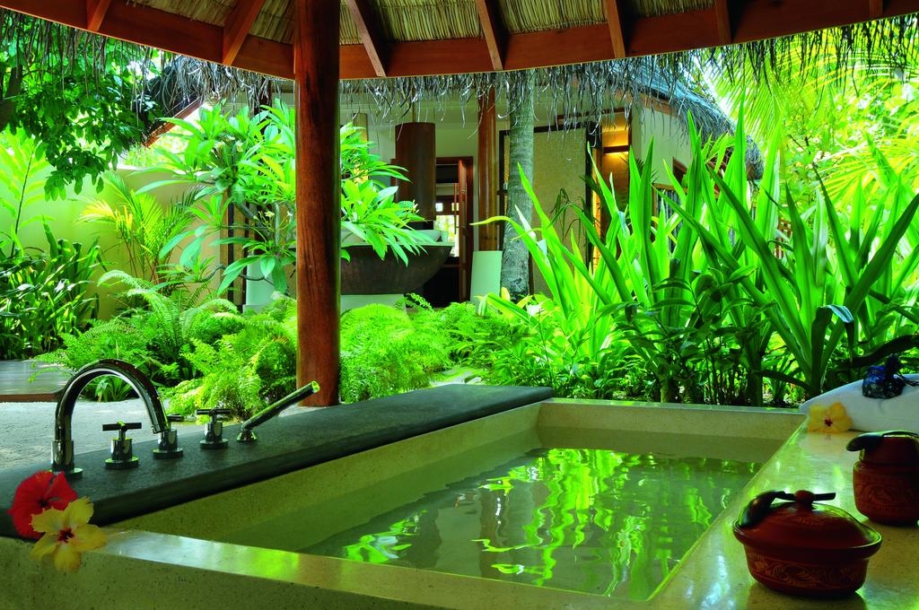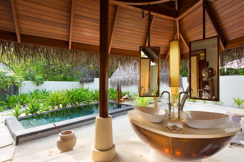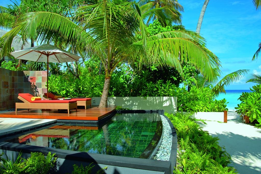 Beach Villa (8) ca. 350 qm (ca. 61 qm Wohnbereich inklusive Veranda): Am Strand mit kleinem Garten und sehr großzügigem Open-Air-Badezimmer.