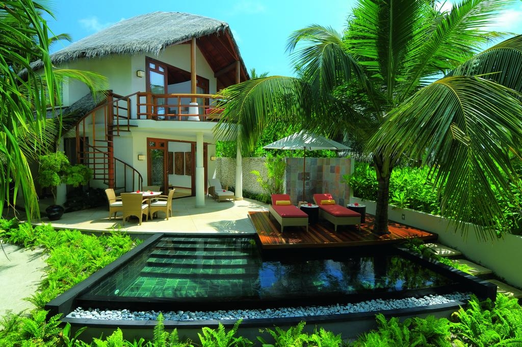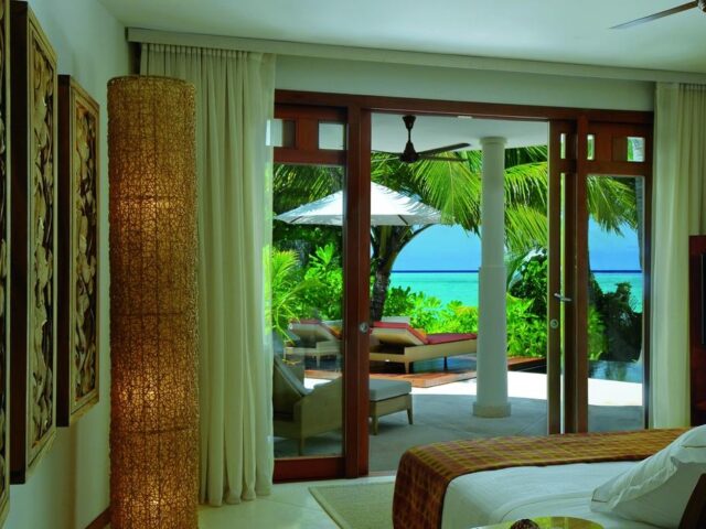 Alle 86 Villen im innovativen Design verwöhnen mit privatem Pool und traumhaftem Blick auf den türkisblauen Ozean. Sie verfügen über einen kombinierten Wohn- und Schlafbereich, Bad mit separater Wasserfall-Dusche, Föhn, TV (Flachbildschirm), Telefon, WLAN, audiovisuelles Entertainment-System von Apple Mac Mini mit iPod-Anschluss, Minibar, Nespresso-Maschine, Wasserkocher, Weinklimaschrank, Safe, Klimaanlage und Deckenventilator.
