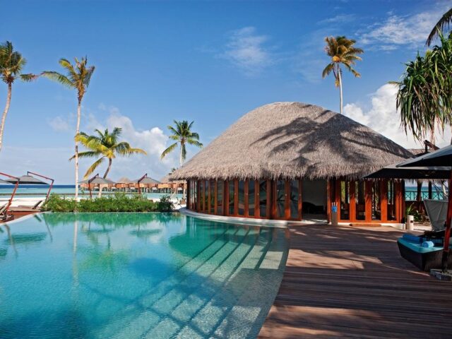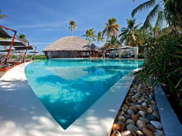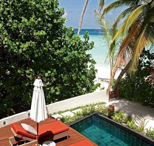 Hier im Constance Halaveli Resort werden Urlaubsträume wahr. Der weiße Sandstrand und das blaue Wasser bilden einen unvergleichlichen Kontrast zum Grün der üppigen tropischen Vegetation auf der Insel.