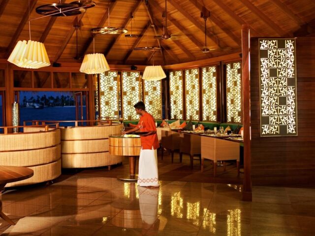 Erleben Sie eine Mischung aus europäischer und asiatischer Fusion Cuisine im Spezialitätenrestaurant mit Bar The JING, das auf Stelzen über dem Meer erbaut ist. Das Hauptrestaurant The JAHAZ mit angrenzender Bar bietet täglich wechselnde Themenbuffets mit internationalen Speisen. Für Freunde von Grillgerichten ist das Strandrestaurant The MEERU am Abend der richtige Ort. Hier können Sie frisch gefangene Meeresfrüchte, Fisch und diverse Fleischspezialitäten in entspannter und ungezwungener „Barfuß“-Atmosphäre unter freiem Himmel genießen.