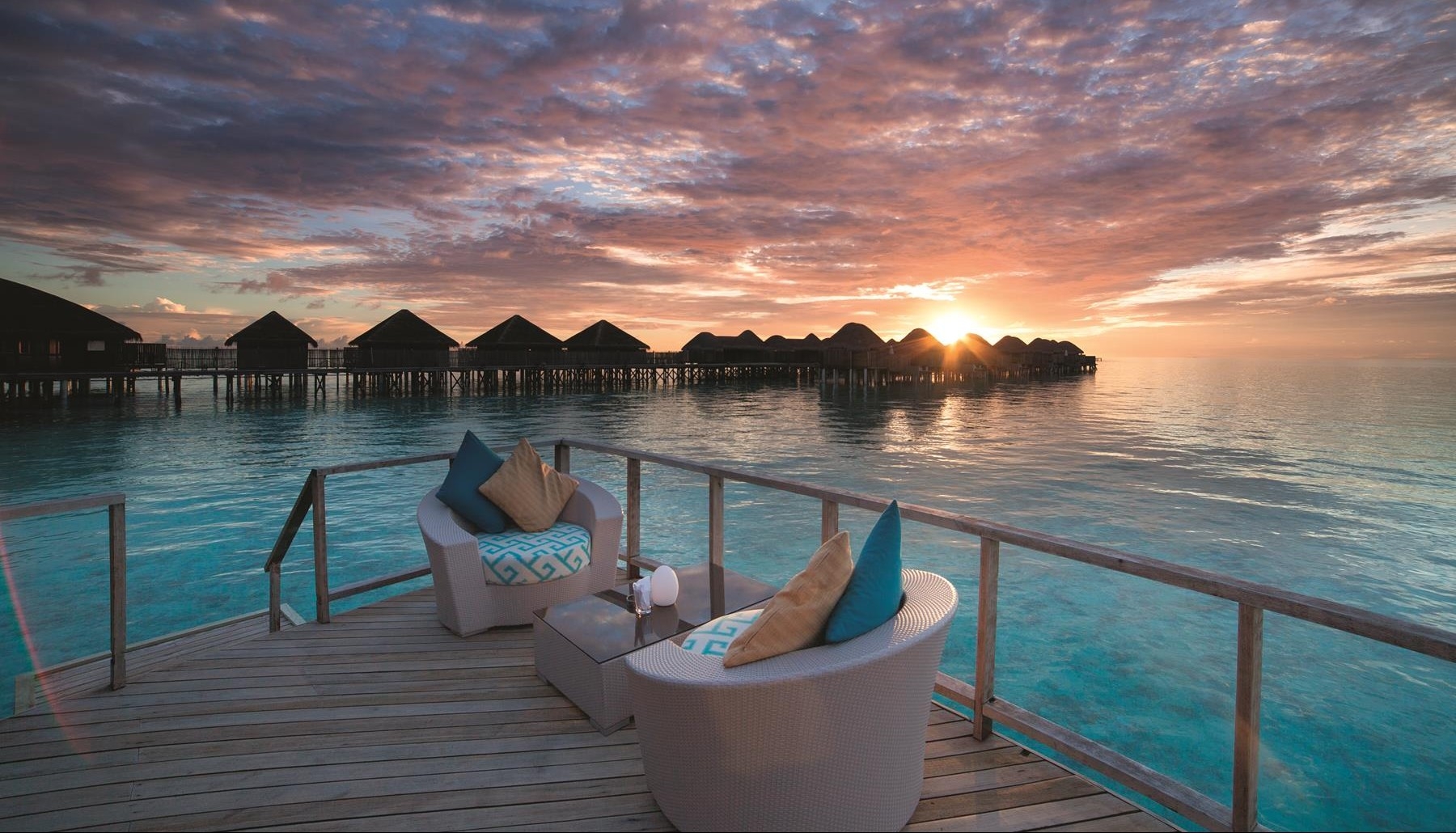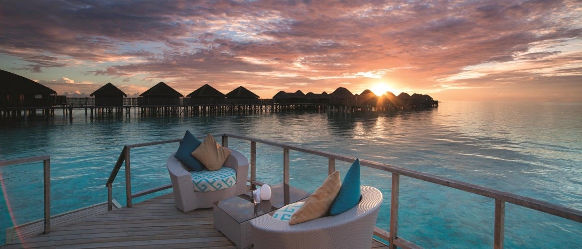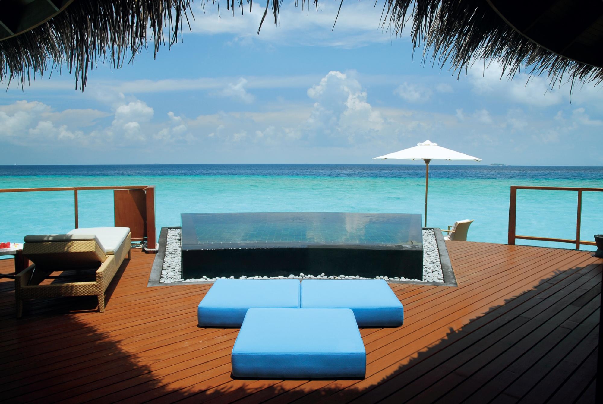 Water Villa (57) ca. 100 qm (ca. 51 qm Wohnfläche): Auf Stelzen in die Lagune gebaut mit Sonnendeck und direktem Zugang zum Meer.