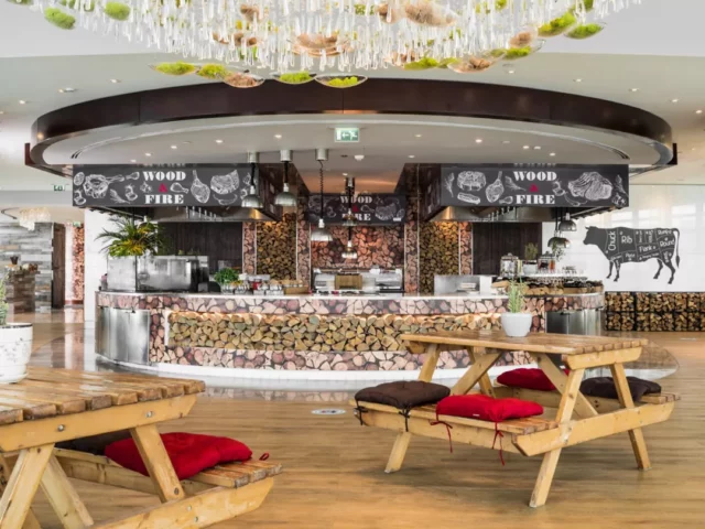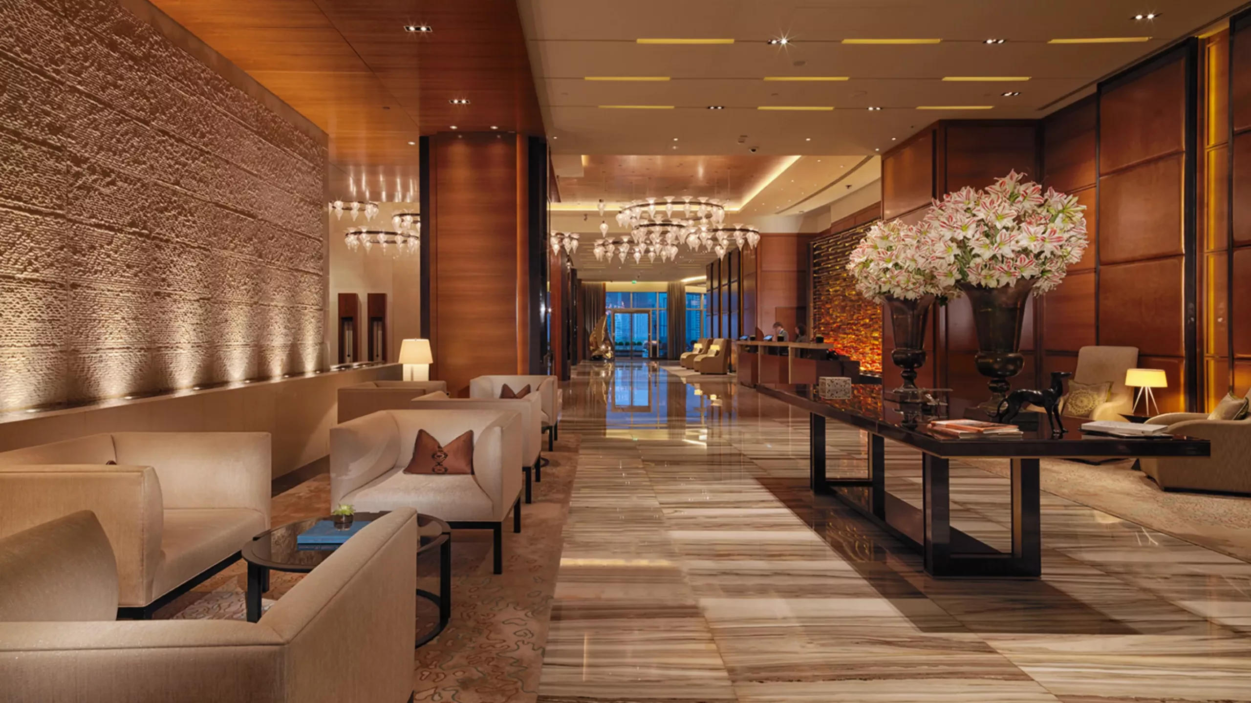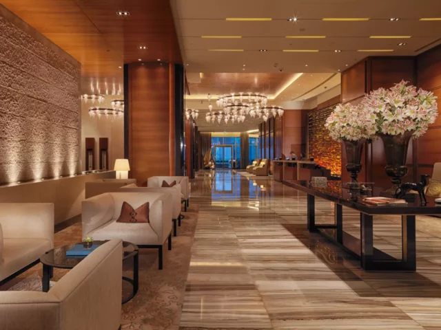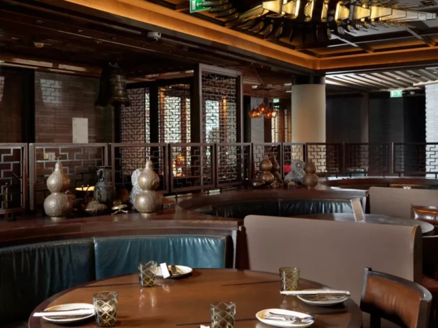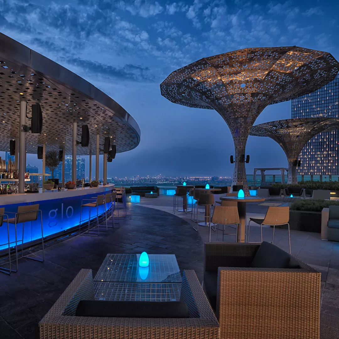 Das Dai Pai Dong serviert authentische kantonesische Speisen, das Aqua internationale Küche als Buffet. Das Dragon’s Tooth bietet erlesene Weine sowie leckere Cocktails und Drinks im schicken Speakeasy-Stil, der von den 1920er Jahren in Shanghai inspiriert ist. Entspannung bieten sowohl die Majlis Lobby Lounge als auch die GLO Bar am Pool. Einen hausgemachten Gin genießen Sie in der Hidden Bar, die über 150 Gins im Angebot hat und über die einzige Gin-Bibliothek in Abu Dhabi verfügt.