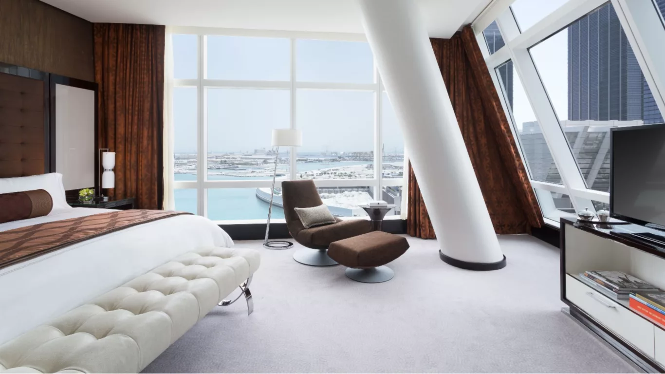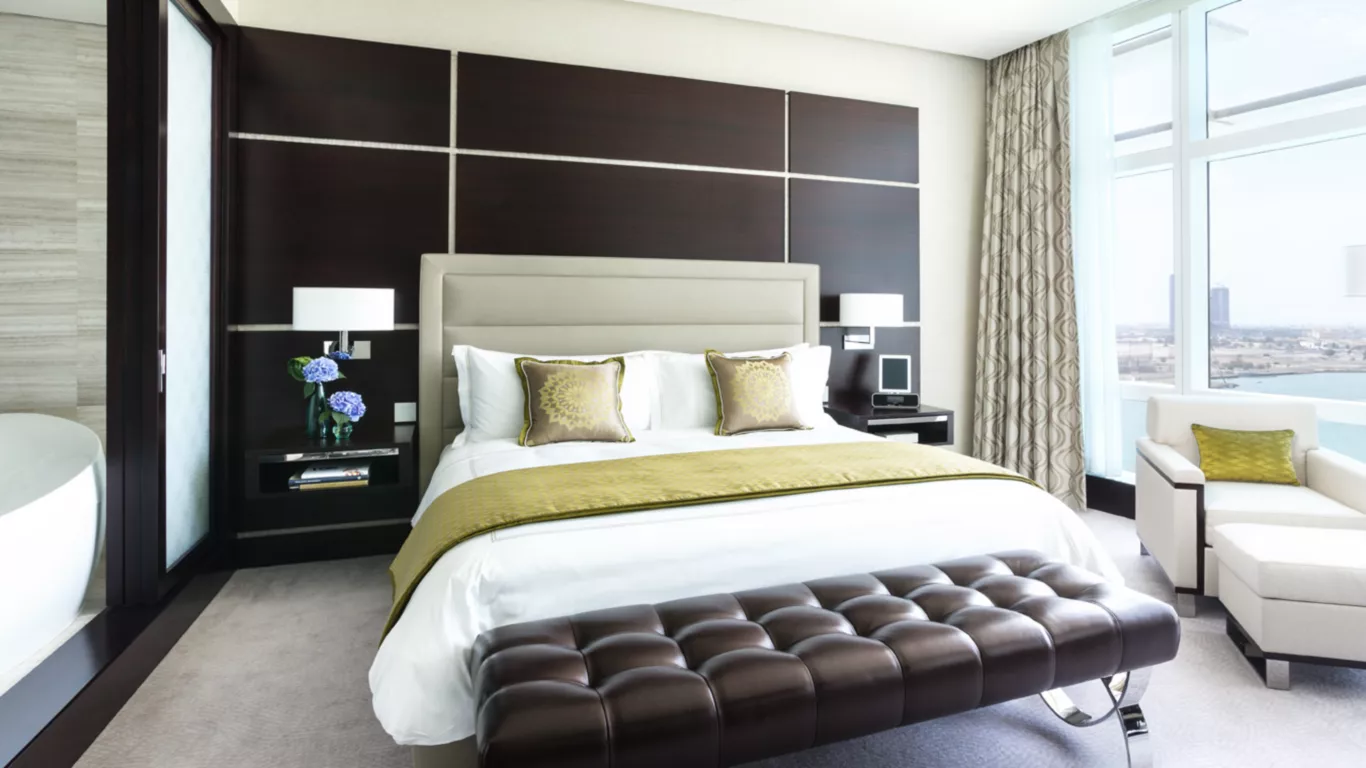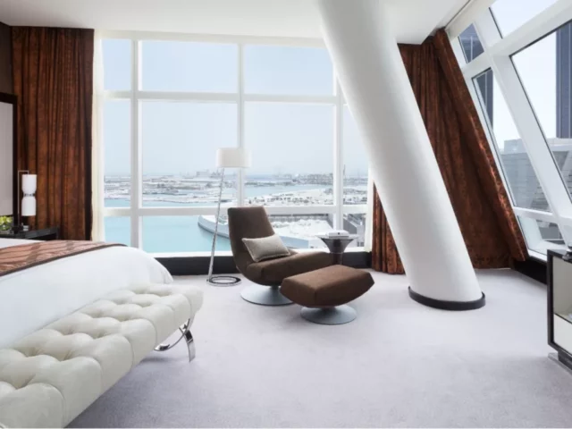 Das supermoderne Rosewood Abu Dhabi in einem markanten, geschwungenen Gebäude am Arabischen Golf ist vom Meer und der Wüste inspiriert. Es liegt inmitten des internationalen Finanz- und Lifestyle-Vierteles auf der Insel Al Maryah.